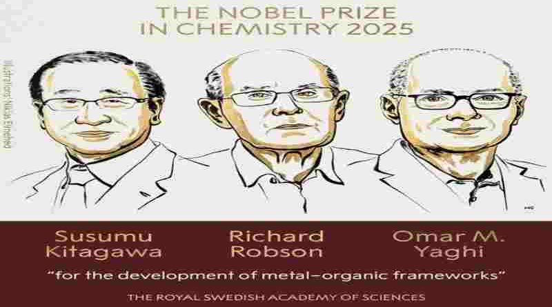 El premio Nobel de Química 2025 fue otorgado a Susumu Kitagawa, Richard Robson y Omar M. Yaghi