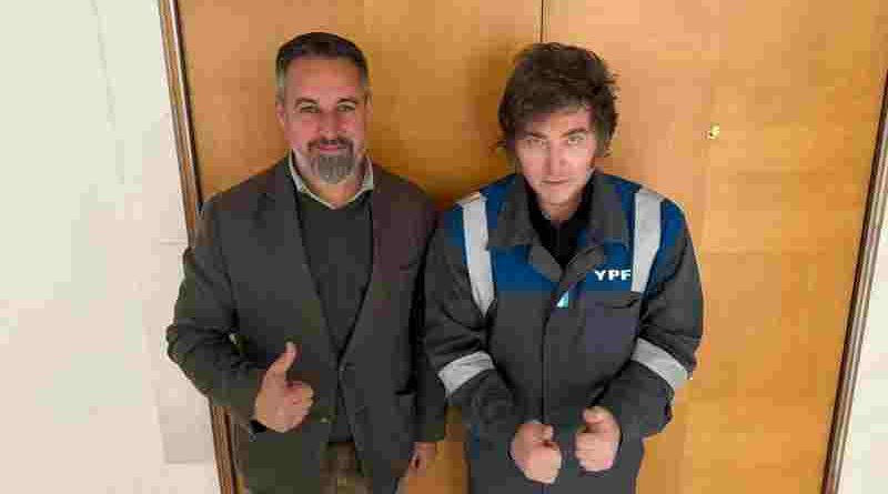 A su vez, el mandatario, vestido con su habitual mameluco de YPF, se reunió con el empresario Martín Varsavsky y su esposa, Nina Varsavsky.