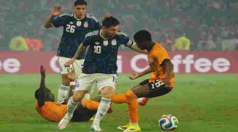 El elenco nacional se impuso con goles del delantero Julián Álvarez, a los tres minutos del primer tiempo, el astro argentino Lionel Messi, en 43 de la primera parte, el defensor Nicolás Otamendi de penal, en su despedida de la Selección y a los cuatro minutos de la segunda etapa, el defensor Dominic Chanda, en contra, cuando iban 22 minutos del complemento, y el mediocampista Valentín Barco, en el tercer minuto de descuento.