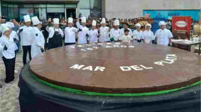Locura por el alfajor gigante en Mar del Plata, pesó más de 700 kilos y van por el récord Guinness