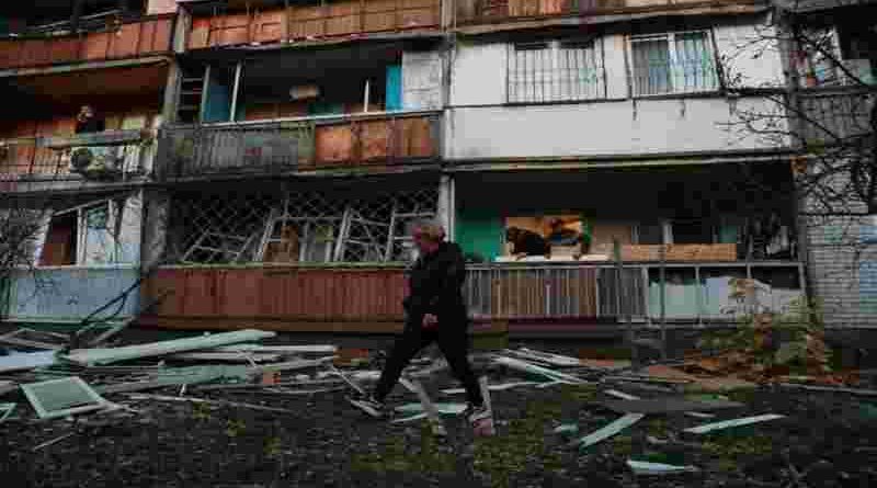Los edificios residenciales sufrieron graves daños en el último ataque aéreo de Rusia contra Ucrania durante la noche del miércoles.